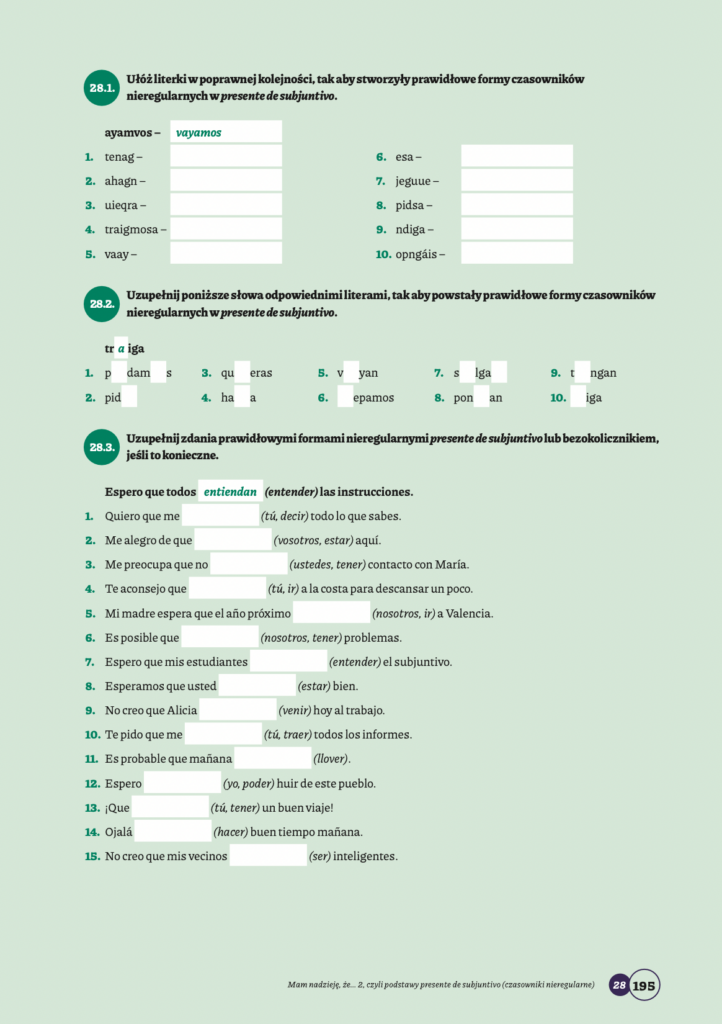 - Mam nadzieję, że… 2, czyli podstawy presente de subjuntivo (czasowniki nieregularne) 191
