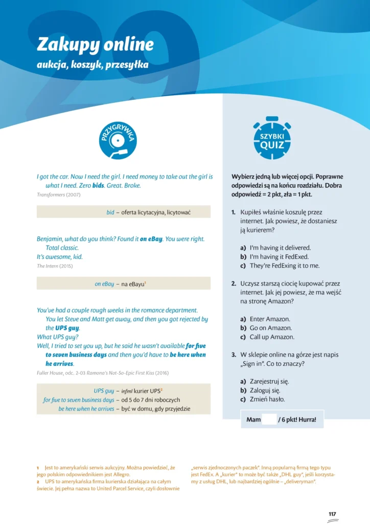 Rada? Na brak (obcego – a konkretnie: angielskiego) języka w gębie rada może być tylko jedna! Wyjąć coś z tego, co na ekranie, z tego, co wybrzmiewa w słuchawkach Twojego smartfona, dodać to, co na ulicach, w sklepach i biznesie, a potem zamknąć w książce, która pokaże Ci krok po kroku, że gdy WŁADASZ angielskim (przynajmniej na poziomie B1) to GADAĆ możesz bez problemu (i to nawet na poziomie C2!). Wystarczy kilka trików, kilkadziesiąt sprytnie sformułowanych zadań i gotowe!
